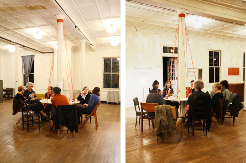 Three Sundays a year, Headlands center of the arts invites people to roam the various buildings of its campus, engage with artists in their studios, experience new work and works in progress. Open house connects visitors to the working process of artists and fosters casual conversation about the creative process. Scheduled in conjunction with Headlands' three artists in residence season, open house features curated happenings and events scheduled throughout the day including readigs, preformances, screenings, and guided walks. A boring table was disigned in occasion of the Open house in the fall of 2012 in the Mess hall. It is a site specific installation designed to host a series of tables around the eight cast iron columns of the room. The conversation among invited guests is continuosly obstructed by the coloumn, the real protagonist of the dialog.