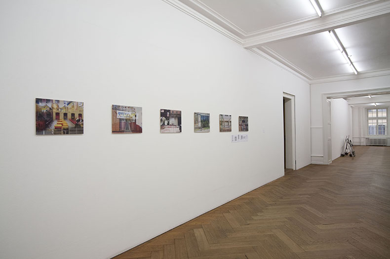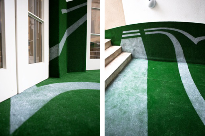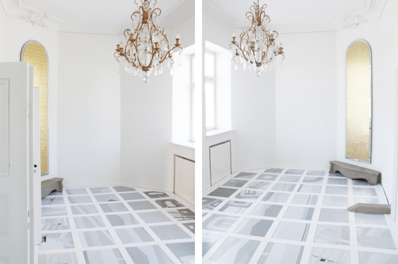 While smoking is being gradually eliminated from public spaces, it doesn’t seem that it can be associated with private life only. Antje Kalus and Matilde Cassani redesigned the smoker’s niche in Schloss Solitude, giving to it a wimbledon green and snow white décor, against the dark-grey coating left by the generations of former fellows. The spheric shape seen in foreshortening gives another glimpse on a too strict division – and thus reopens, again, the socializing factor of Solitude’s life. A friendly place for smokers. Ana Ptak