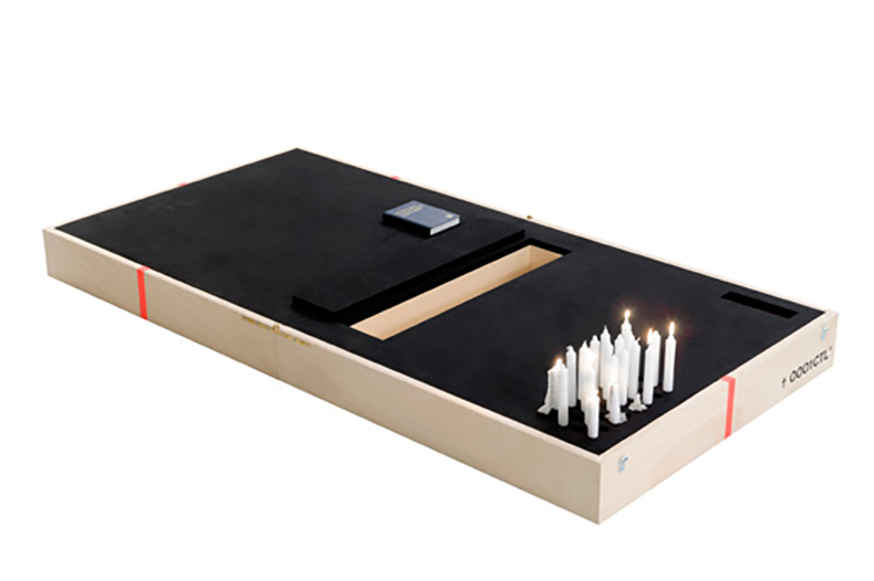 For this project, Cassani spearheaded a comprehensive investigation of the pivotal needs for prayer rituals of four world religions as regards space, furnishings, and other objects. The artist’s orientation here was particularly geared toward the makeshift, sometimes unofficial prayers rooms of religious minorities in European cities. She developed four mobile modules in which the most important standards for praying in Christianity, Islam, Buddhism, and Sikhism were addressed and fulfilled while engaging the smallest amount of space possible. The elements are all mass-produced objects, that, in abscence of the proper ones, act as sacred objects. The container is a 1 x 2 metres large box, foldable and transportable. The site is an airport, a prison, a cruise liner, a street or a garage. As a metaphore of the current reality the “Spiritual device" act as solidified heterotopy. The iconic, central, clear image of a place to worship becomes a box to be treated with strong faith.