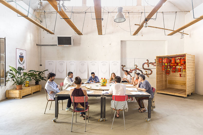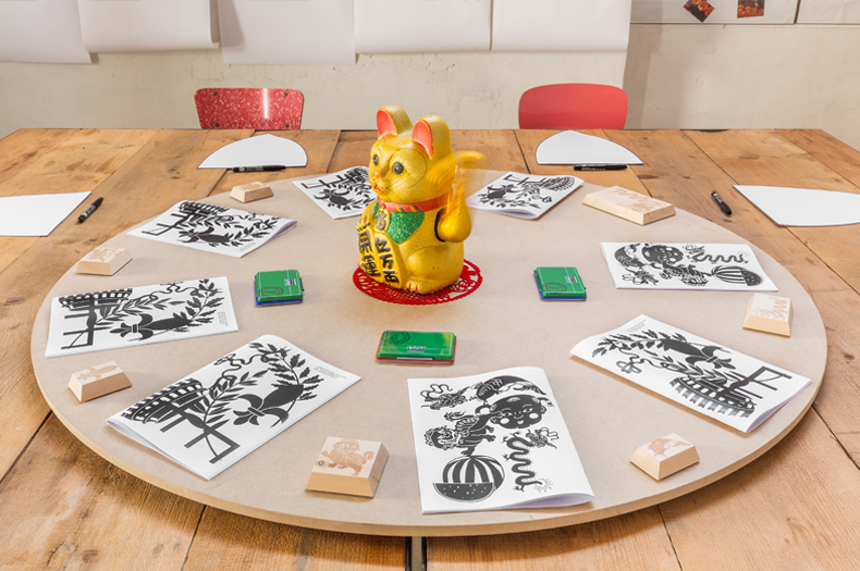 Sewing machines, dragons, watermelons and firecrackers, 2016 With: Martina Motta Institution: After Belonging, OAT, Oslo Architecture Triennale, 2016 Curators: Lluís Alexandre Casanovas Blanco, Ignacio G. Galán, Carlos Mínguez Carrasco, Alejandra Navarrete Llopis and Marina Otero Ver Graphic design: Bianca Fabbri Photos: Delfino Sisto Legnani and Marco Cappelletti Video: Antonio Buonsante Rubber-stamps: Sebastiano Conti Gallenti Workshop organization: Martina Motta and Lottozero (Tessa and Arianna Moroder) Workshop location: Associazione culturale Chì-na (Cosimo Balestri, Emanuele Barili, Luca Ficini, Alberto e Guido Gramigni) Manufacture: Giovanni Nizzola, La Nazionale Manifatturie S.N.C., Ricamo Bollate