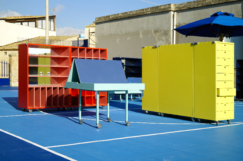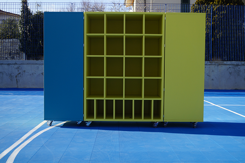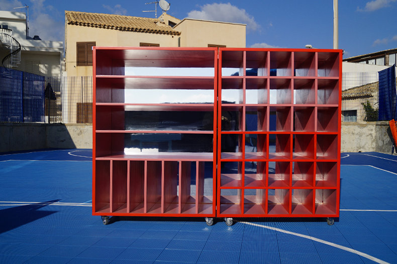“Atelier del mare” is a public project designed for to the kids of Scicli’s secondary school. It is an archive of objects, carefully stored on the shelves of a wide closet. Every shelf can host a small group of objects, which recall the relationship between man and sea: fishermen, barges, sailing boats, sun, water and the surface of the sand. The objects, collected by the children from the nearby beach, are all things the sea leaves behind the waves. The child can thus experience, understand and respect the sea, its natural and its artificial inhabitants.