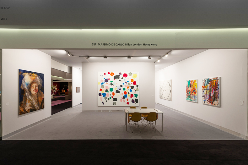 Massimo De Carlo, art fairs 2019-2020 Exhibition design: Matilde Cassani with Leonardo Gatti Collaborators: Matteo Franti, Carolina Sartori At: Art Basel 2019, Fiac Paris 2019, Westbund Shangai 2019, Frieze Masters 2019, Art Basel Miami 2019, Taipei 2019, art Geneve 2020, Frieze Los Angeles 2020, Tefaf Maastricht 2019/2020. Manufacturer: Allestimenti Benfenati s.p.a
