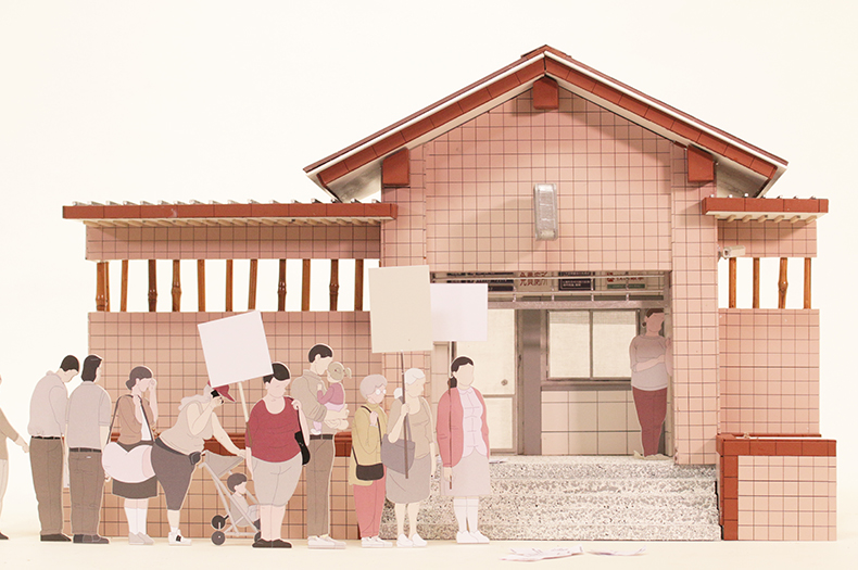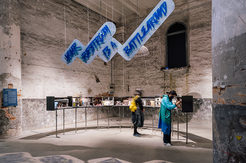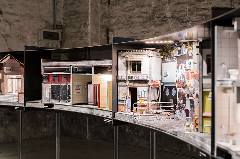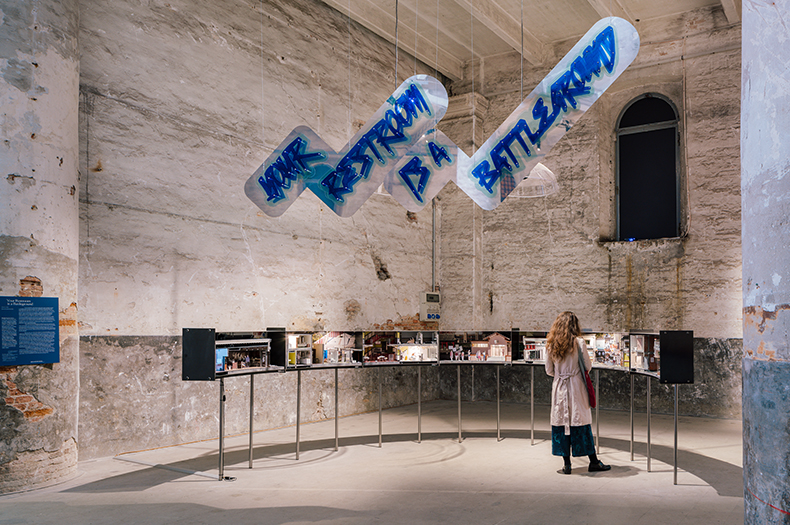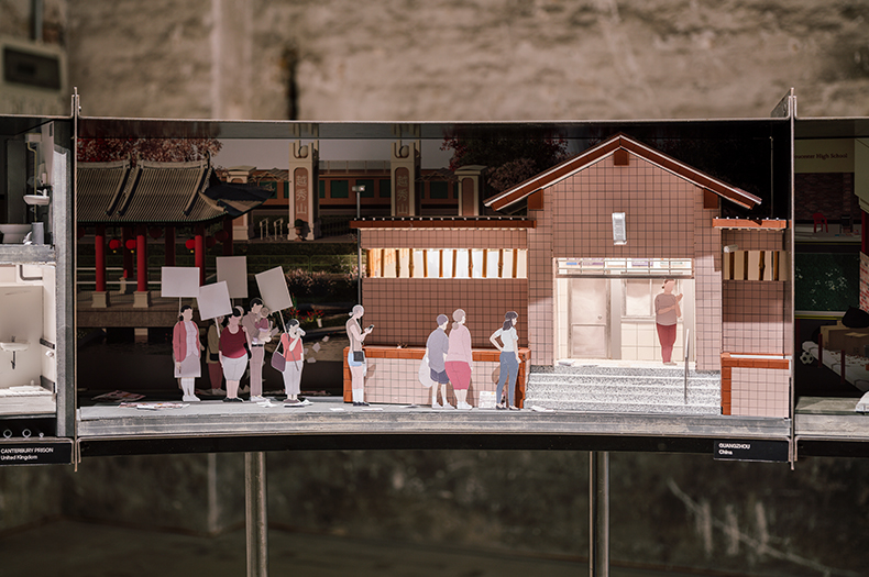 Your restroom is a battleground, 2021 Research and Design: Matilde Cassani; Ignacio G. Galán; Iván L. Munuera; Joel Sanders Research and Design Collaboration: Seb Choe; Leonardo Gatti; Vanessa Gonzalez; Marco Li; and Maria Chiara Pastore Model Design and Production: Pablo Saiz del Rio Graphic and Web Design: Paula Vilaplana de Miguel Multimedia Production: Paula Vilaplana de Miguel and Jorge Lopez Conde Podcast voices: Maxime Diamond, Paola Pardo Castillo, Jean Im, Matty Cheesbrough, Stuart Sagar, Aimie Hamraie, Gavin Grimm, Jean Evens, Pierre Stanley, Thamara Hela, Barbara Penner, Joshua Block, Masixole Feni, Wang Xiu Ying, Antoine Comets, Malivai Luce Location: Corderie dell’Arsenale Sponsors: Elise Jaffe+Jeffrey Brown, Barnard College (Columbia University), Princeton University School of Architecture, Yale University School of Architecture