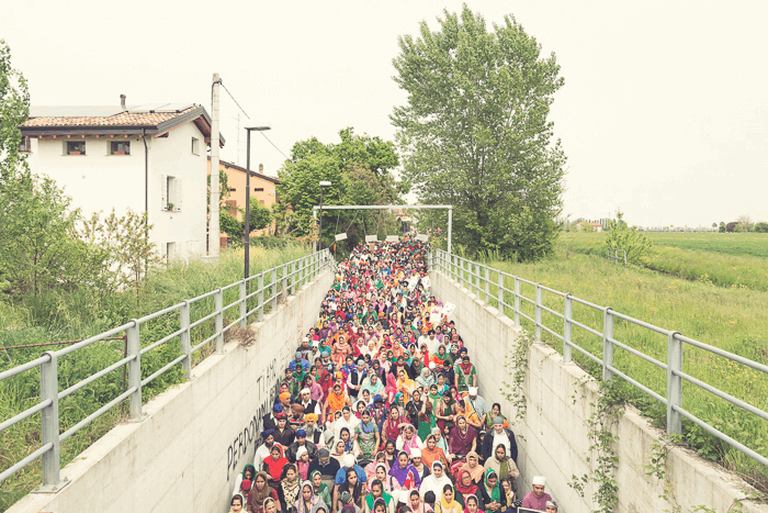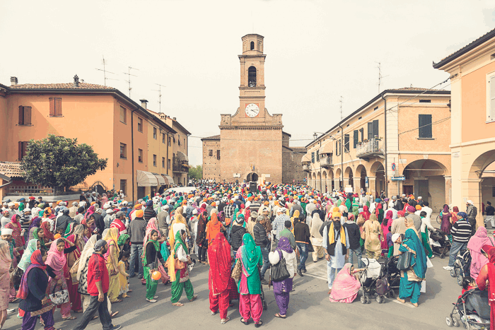 Every year the numerous Sikh temples built across the Italian agricultural farmlands of the Pianura Padana host a huge harvest festival, the Vaisakhi, bringing together thousands of Sikhs. During this time, the religious diversity of the rural Italian population becomes evident; in just 20 years, the country has developed from a clear Catholic majority to a complex and unique pattern of religious communities. "The Vaisakhi questions how urban reality and the use of urban spaces change much more quickly than do urban planning policies, tools or regulations.