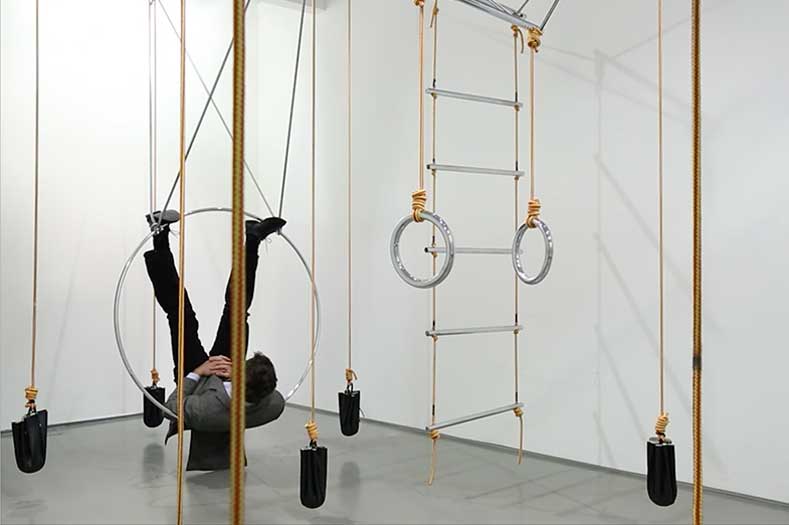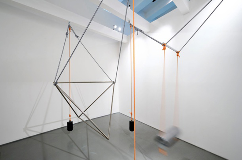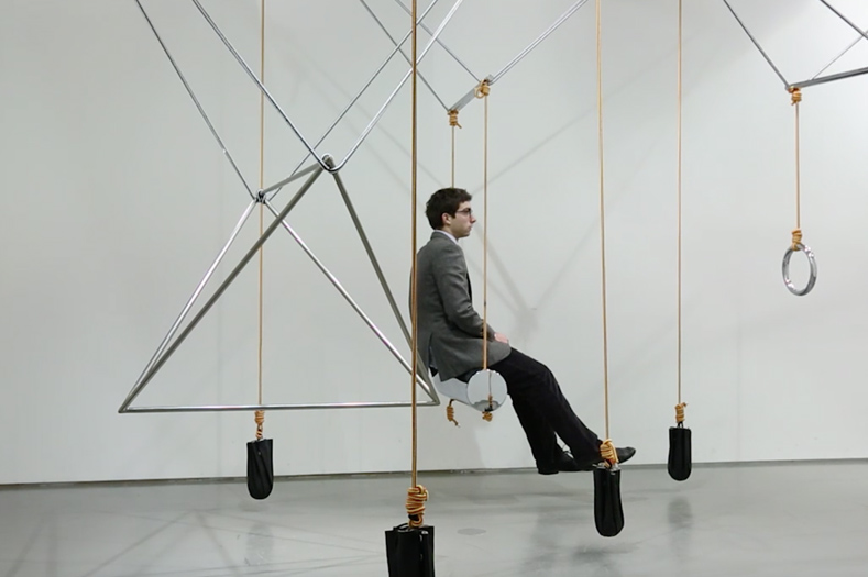 Munari was creating projects that could change indefinitely, without ever losing his and their nature. The identity layed in the possibility of infinite mutations. The project was a combination of technique, cleverness and irony. In “Munari, percorsi a mezz’aria” the visitor can experience the anxiety to seek a position in space identifying himself for a moment in Munari who could sit on a chair in 100 different ways.
