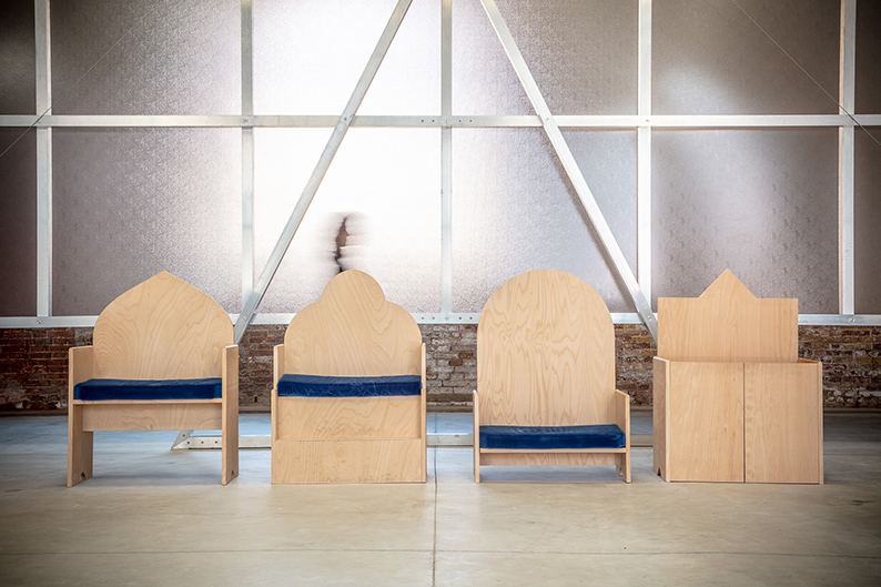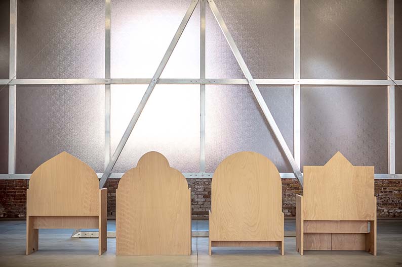 It is almost impossible to define the minbar as a fixed architectural typology, but perhaps it can be considered as an archetype: although its function is clear, to allow the speaker a privileged view and a more outstanding position, its shape varies according to an infinite series of factors and cultural inputs. The four models are based on a minbar found in the mosque of Al-Wahid in Milano and declined according to the four composing elements of a minbar: a seat, a step, a gate and the stairs. The four minbars respond to the same function yet are declined in four different manners based on the idea that every specific context, where a minbar is produced, and community, bring new meanings to a universal object. If form, material and decorations can vary its function stays as a raised spot from where the sermon is preached.