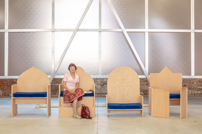 Italian public space is also an interior or, better, a direct extension of the house. In the summer months, a chair represents the boundary between public and private and, as the hours go by, it can become a living room, a support for sewing, reading and a kitchen. The landlady is responsible for the space in front of the facade of the house. She awaits the arrival of objects of all kinds and people: from food to grandchildren, from friends to husband, until the evening. From the chairs on which they were portrayed, people on display chat between Basilicata, Umbria, Calabria and Sardinia.